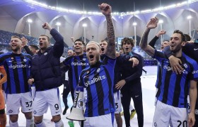 米兰目前以14胜4平4负积46分位列意甲...