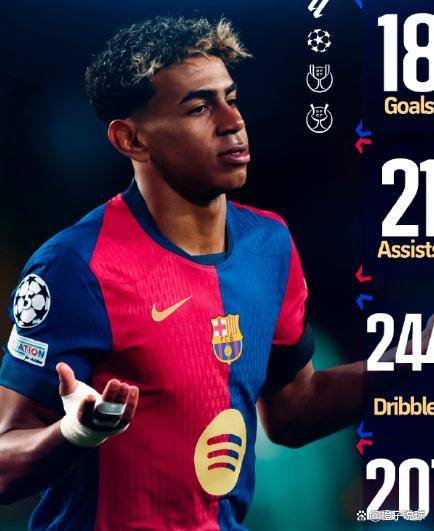 亚马尔自2023-24赛季至今已为巴萨出战24场欧冠,贡献5球6助攻。 在球队伤兵满营的困境下,他不仅是进攻核心,更成为巴萨球迷的“定心丸”。 弗里克在排兵布阵时,甚至不敢让亚马尔打满全场,只因他的身体状况也并未达到100%。